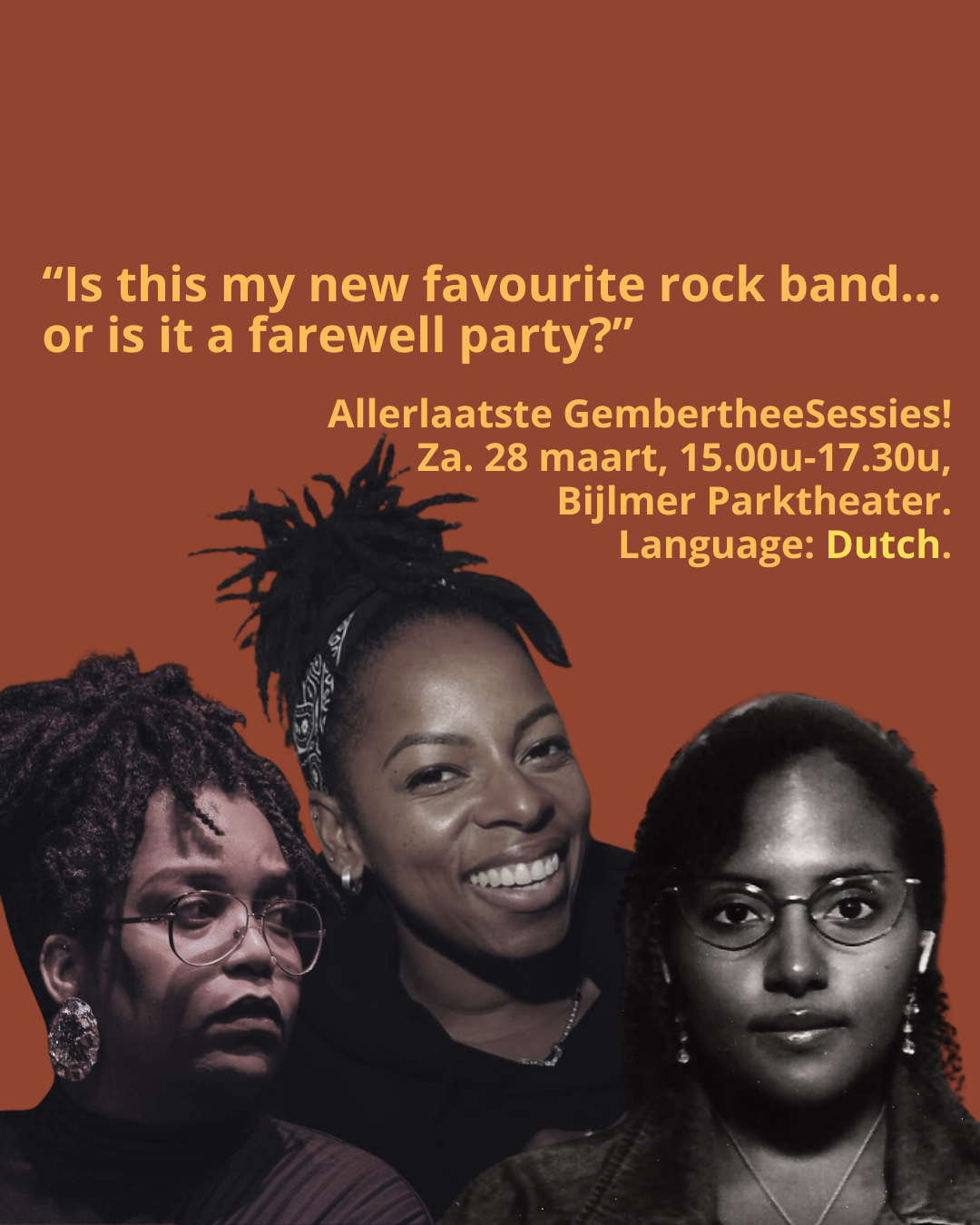 Posted on March 24, 2026, in Bijlmer Parktheater, GembertheeSessies, Ginger Tea Sessions. Bookmark the permalink. Comments Off on Last ever GembertheeSessies and Sisterhood (play).
