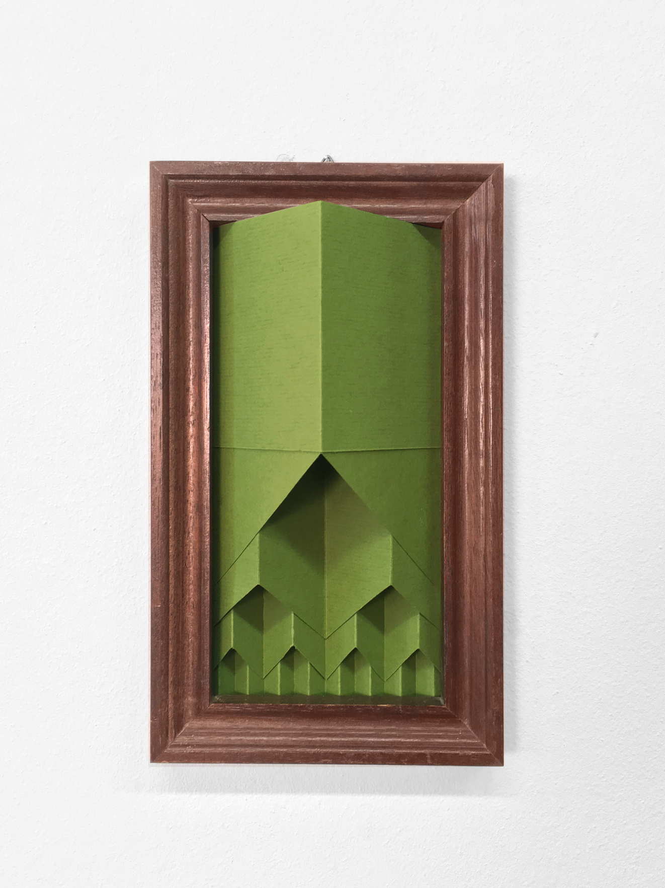 As a visual artist, he creates colorful paintings with paper that he folds and tears. He uses accessible techniques such as folding, cutting and pasting to work as intuitively as possible. His work, of which you can see an example in this picture, is about light and space. It’s characterized by monochromy, repetition, seriality and the immediacy of the materials he uses.